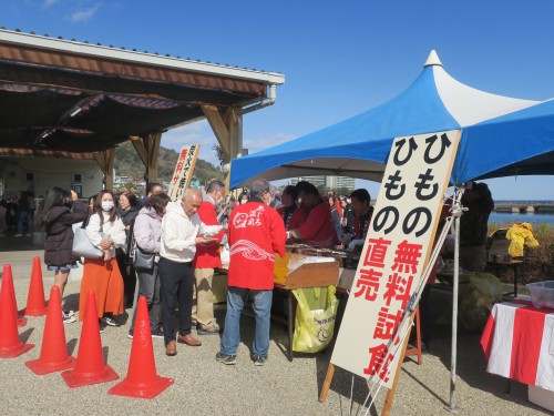 また、網代や近海でとれたアジをひらいた干物が有名で国道沿いの通称「ひもの銀座」には、アジの干物だけでなく季節の新鮮な干物が販売されています。