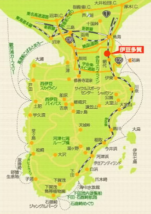 東名沼津インターから、伊豆縦貫道路を経由、熱函道路を利用し熱海を経て約1時間